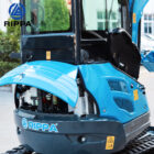 - Features: Swing boom (for offset digging) and side-mounted pilot joysticks.